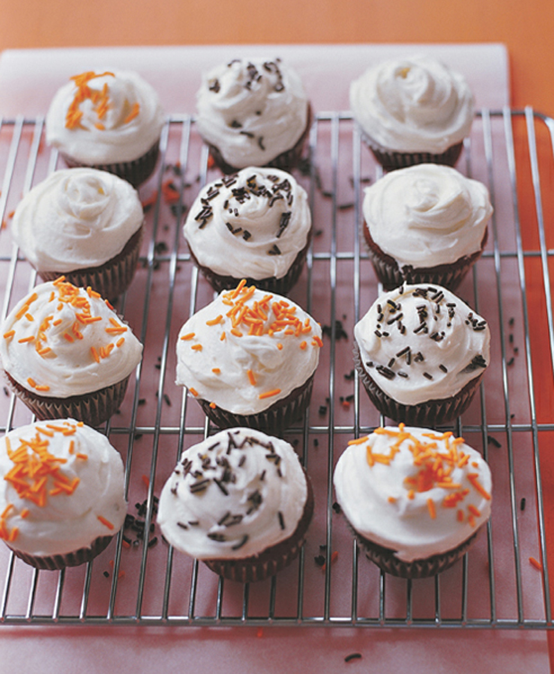 - To finish, use a small offset spatula to spread frosting over each cupcake. Refrigerate up to 3 days in airtight containers; bring to room temperature and, if desired, decorate with sprinkles before serving.