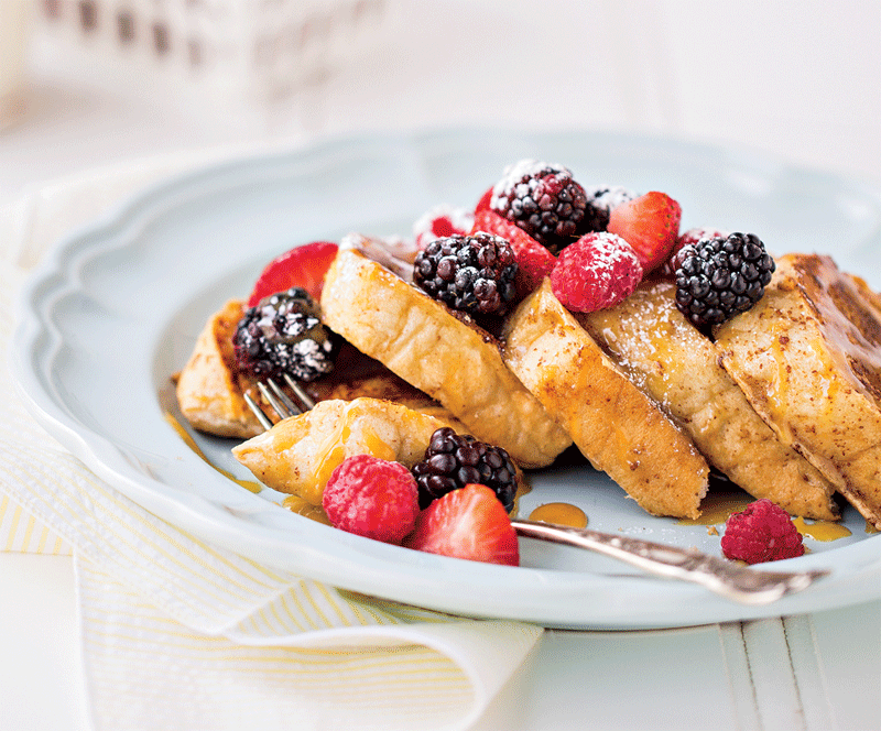 - Serve immediately, or place the French toast on a baking sheet in the oven at 175°F to keep warm. Top with fresh berries and maple syrup or candy syrup.