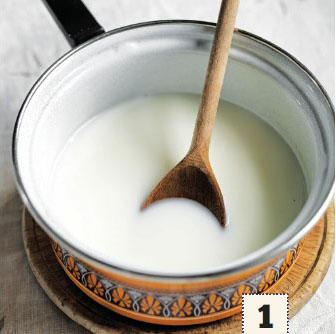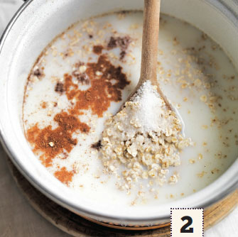 Place the coconut water, water and milk in a saucepan and stir well to combine