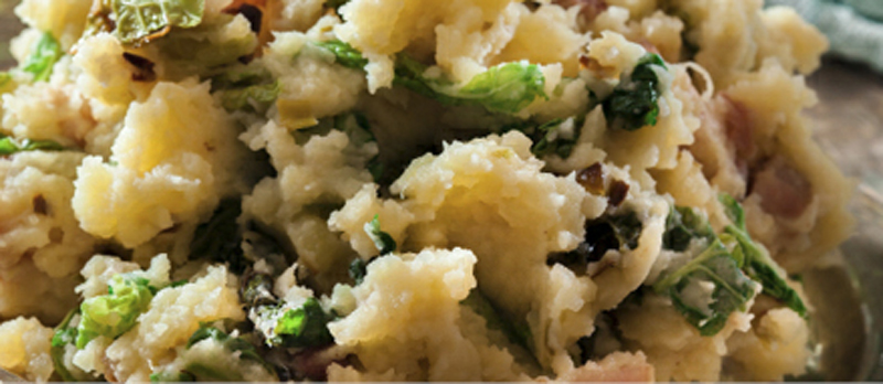 - Season with salt and pepper and mash potatoes, then stir in the leeks and milk. Now stir in the cabbage and heat through. Make a hole in the centre and tip in the melted butter. Combine well. Serve hot.
