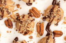 - Using a mini ice cream scooper or spoon, scoop out 1-inch balls of the mixture. Place the balls on a serving platter. Place the platter in the refrigerator while you make the chocolate drizzle.
