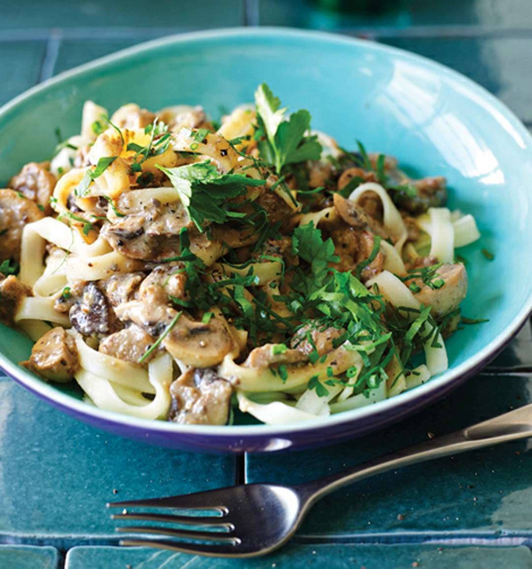 - Cook the pasta according to the package instructions. Drain the pasta and add it to the mushroom sauce. Add the parsley and stir to combine. Season to taste with salt and pepper and serve family-style in a big bowl garnished with the chives and parsley.