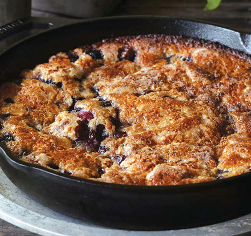 - Remove the skillet from the oven, and swirl the butter to evenly coat the bottom and sides. Pour the batter into the skillet, and sprinkle the blueberries evenly over the top. Sprinkle over the remaining ¼ cup sugar.