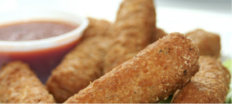 This snack is visually great and tastes as good as it looks. The crisp golden mozzarella sticks are served alongside a mouth-watering sauce and make a fantastic light lunch or starter.