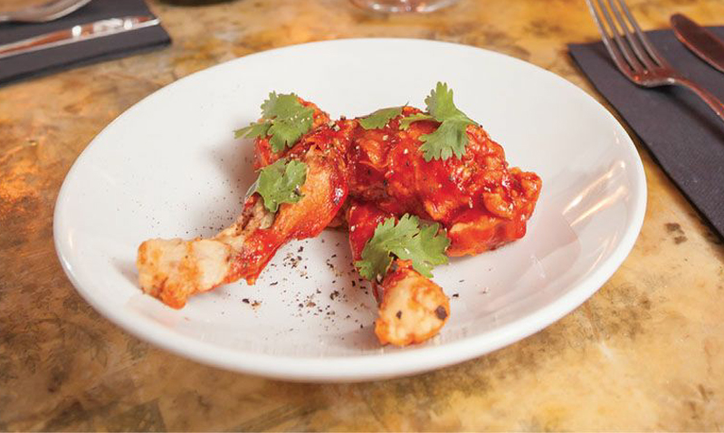 - Put ½ of the Glaze in a bowl, add the fried Frog Legs, and coat the legs with the Glaze. Place glazed legs on serving plates. Top with fresh black pepper and cilantro leaves before serving.