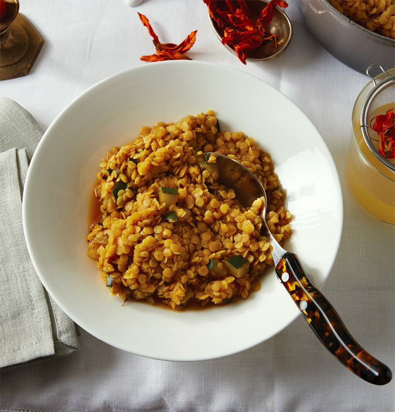 Lentils are easy to make, easy on your digestion, and all around a loving way to feed yourself and others. Do not be afraid of the plethora of spices; these are pantry staples that further light your digestive fire in this dish. This is a hybrid of Indian kitchari and a favorite Middle Eastern lentil dish (made with zucchini instead of potato) ancient dishes that will be relevant as long as we have stomachs and emotions to turn them. Asking someone what they were given when they were not well is a fascinating high-mileage question. Whether they were suffering from the flu, an upset stomach, a bad day at school, a heartbreak; people often remember that meals shared during such times were warming, nourishing, and grounding just like these gentle lentils, which not only deliver a great source of protein, but are the easiest legume to digest even without the addition of all the healing spices.