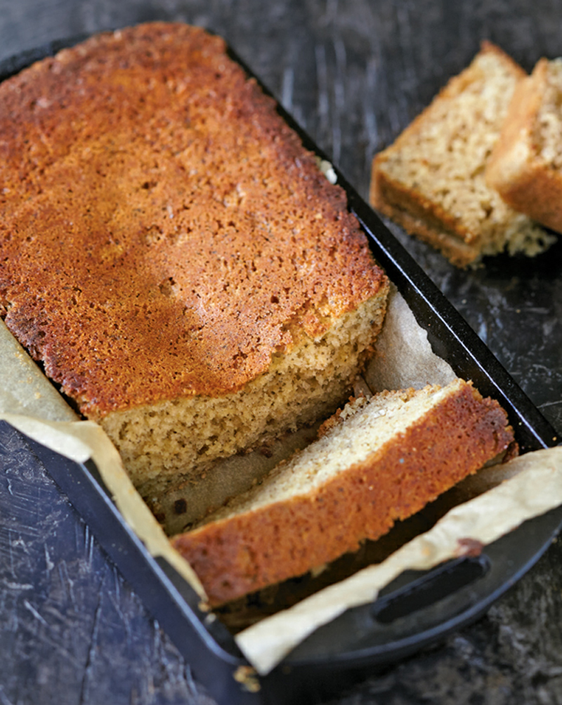- Remove the pan from the oven, and remove the parchment. Cover the loaf pan with a fresh sheet of parchment, and cover again with the baking sheet. Invert the loaf pan and baking sheet. Remove the loaf pan, and let the cake sit upside down on the baking sheet until it cools down just enough that you can handle it. Wrap tightly with plastic wrap to lock in the moisture, and refrigerate for 12 hours before serving in slices.