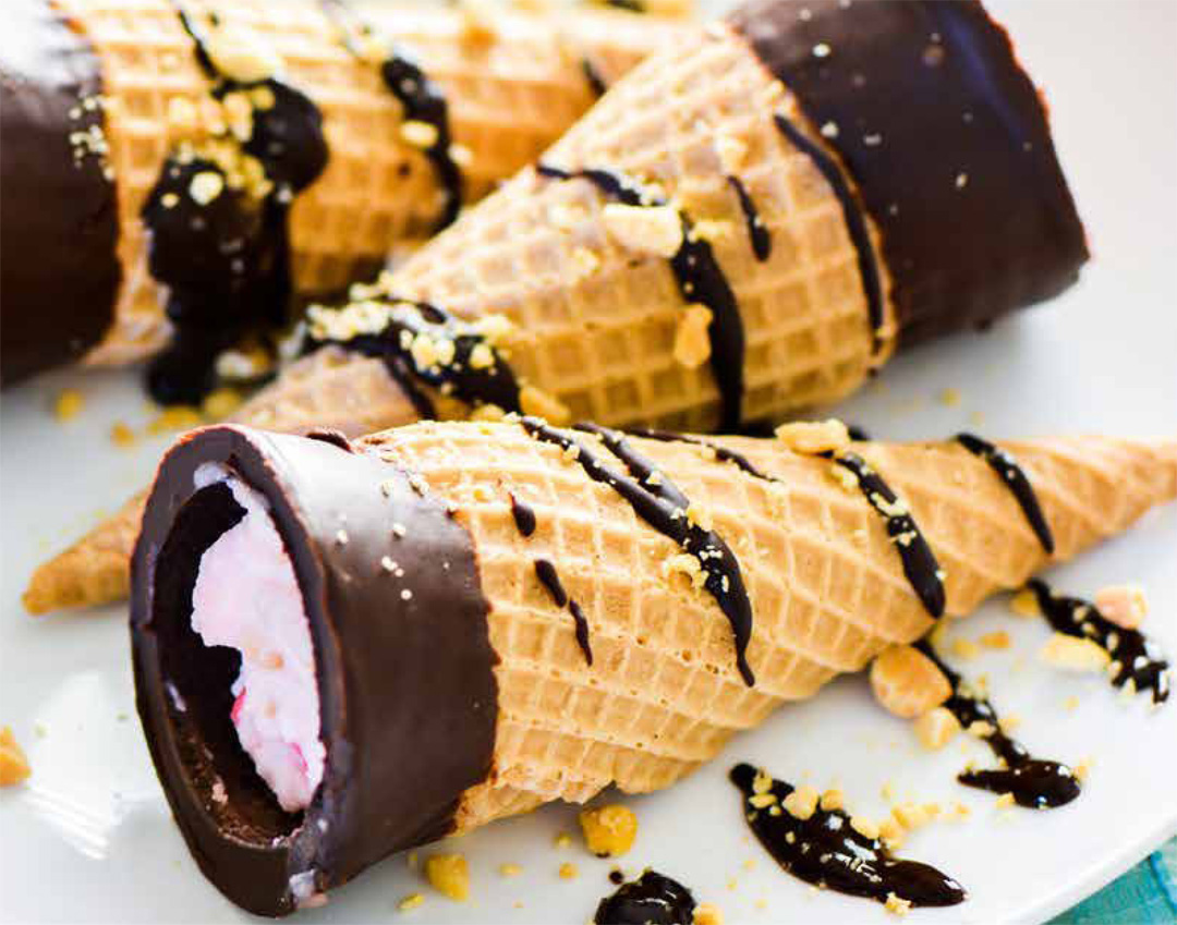 - Divide the mixture evenly among the ice-cream cones and serve immediately.