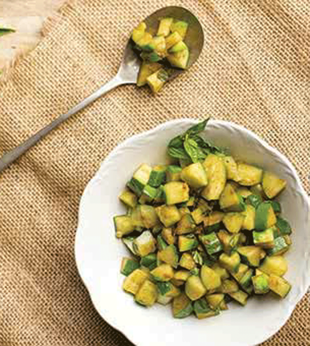 - Place the coconut oil, turmeric, lime juice, basil, and salt in a large skillet over medium heat. Add the cucumbers and sauté for 7 minutes, or until the cucumbers are getting soft but not brown.