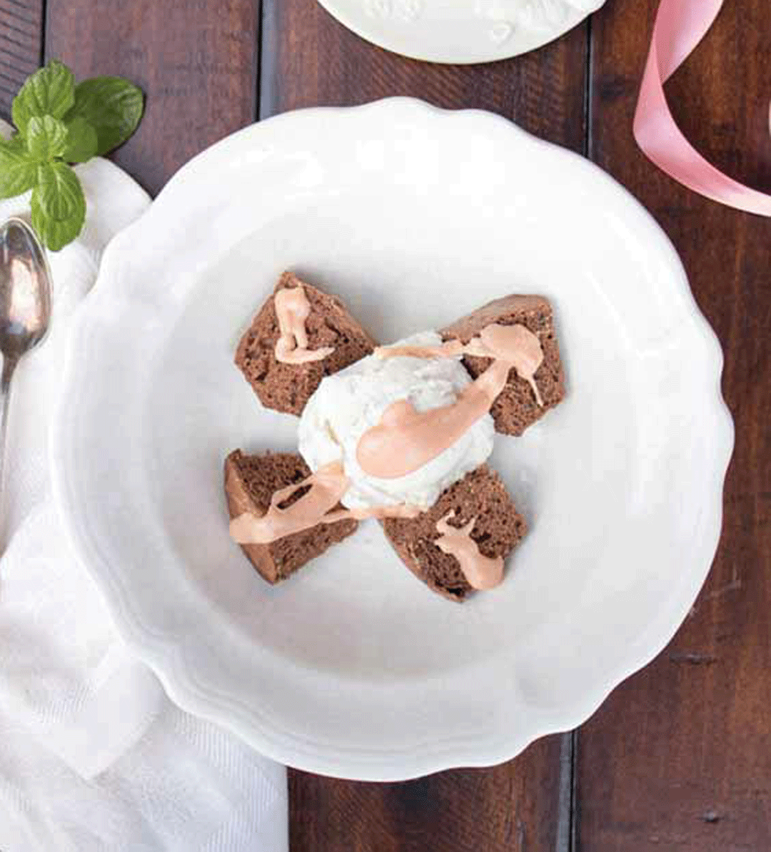 - To assemble the dessert, remove the ice cream from the freezer. (If you made the ice cream ahead of time and it’s frozen solid, allow it to soften for 15 to 25 minutes.) Slice a cake into 4 wedges and arrange them in a serving bowl. Scoop half of the ice cream into the bowl, then drizzle half of the cherry glaze over the ice cream. Repeat with the other cake and remaining ice cream and glaze.