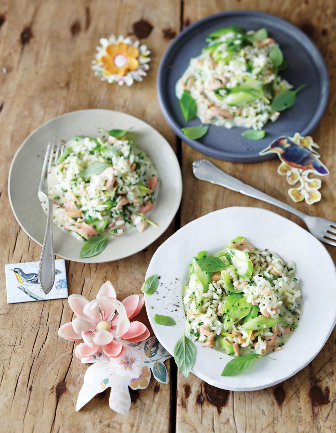 - Once the rice is ready, stir in the cream and salmon. Cook gently until the salmon is opaque, about 3-4 minutes. Season to taste with salt and pepper.