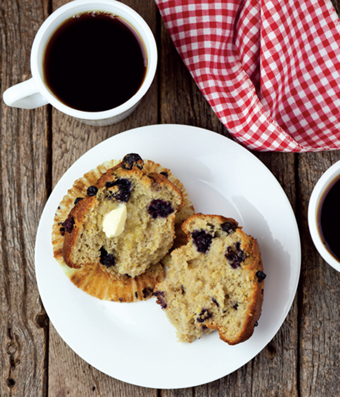 Cornmeal makes the texture of these muffins so enjoyable, and the pairing of the subtle lemon flavour and the bright blueberries makes this recipe a real winner. As a bonus, these muffins are lightly sweetened, so if you omit the lemon and blueberries, you will have a simple cornbread muffin that goes great alongside your favourite veggie chili or stew.