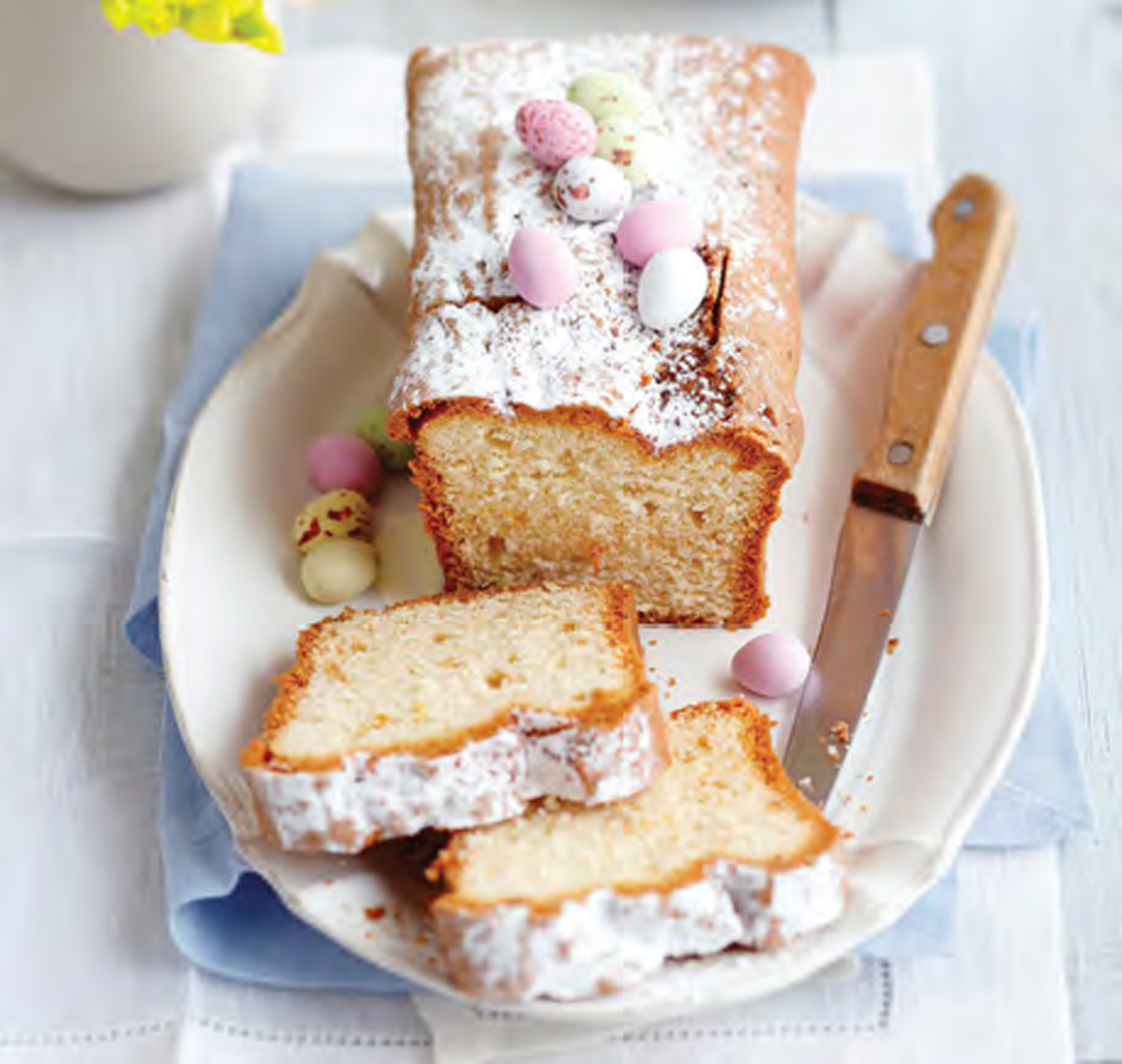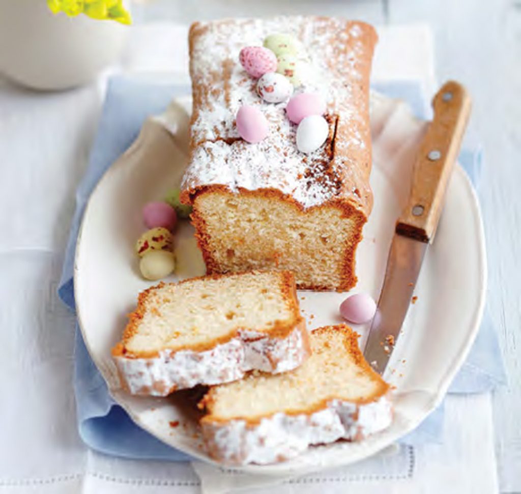 - Once cool, turn out from the tin and cut into slices. Serve, topped with mini chocolate eggs.
