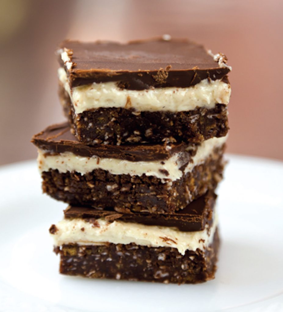 These rich and sugary little squares pop up at potluck family functions and church basements everywhere. Originally from Nanaimo, British Columbia, this bar is steeped in mystery and intrigue. Some say it was a housewife who first submitted the recipe for publication in the 1950s. Others say it dates back to the 1930s or even the 1800s. Whatever the origins, it’s ours now!