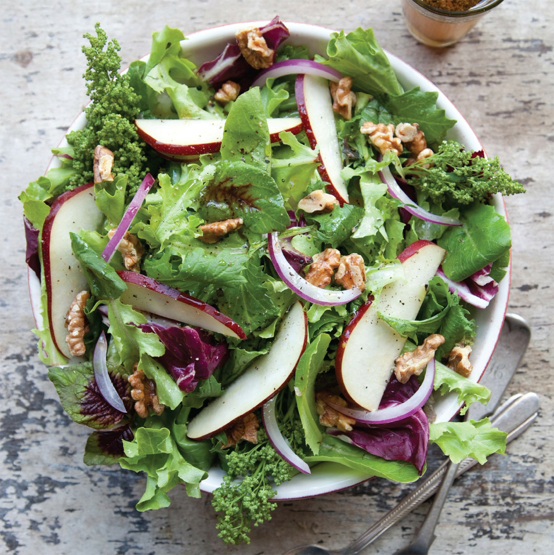 Pears and walnuts are a beautiful salad combination. The crisp sweetness of the pears and the toasted crunchiness of the walnuts, combined with the sweet-and-sour fruit vinaigrette, make this a simple meal to savor.