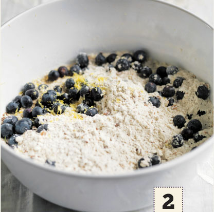 Put the flour, oatmeal, milled flaxseed, baking powder, bicarbonate of soda, salt and stevia granules into a large mixing bowl and thoroughly combine with a fork. Stir in the blueberries and lemon rind.- Put the yogurt, oil, lemon juice and milk into a jug and whisk together.