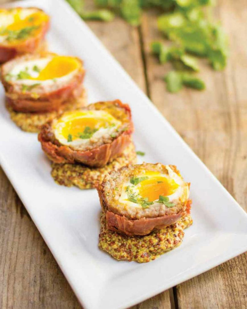 The keys to making perfect Scotch eggs are to cook perfect soft-boiled eggs not overcooked or rubbery ones and to get the frying oil to the right temperature. Oil that’s not hot enough creates soggy and oily fried foods, but if it’s too hot, the exterior will burn before the interior in this case the ground pork has a chance to cook. The first time I made Scotch eggs, the oil was too hot. When I dropped my first egg in the pot, the oil boiled over and started a fire, and the prosciutto wrapper cooked so fast that the pork inside was still raw. Learn from my mistake and use a thermometer to check the oil temperature! The classic method for cooking Scotch eggs is to fry them, but I’ve also included an oven-cooked variation if you prefer to prepare them that way.