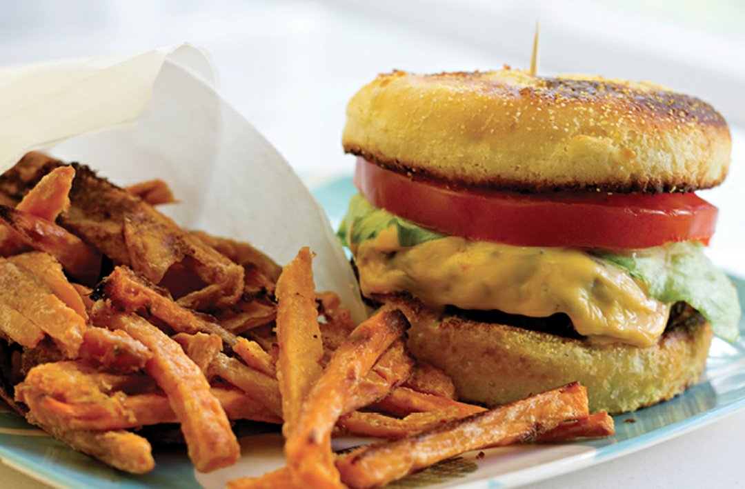 - Serve burgers on whole-wheat buns with romaine or spinach lettuce, fresh tomatoes, and condiments if desired.