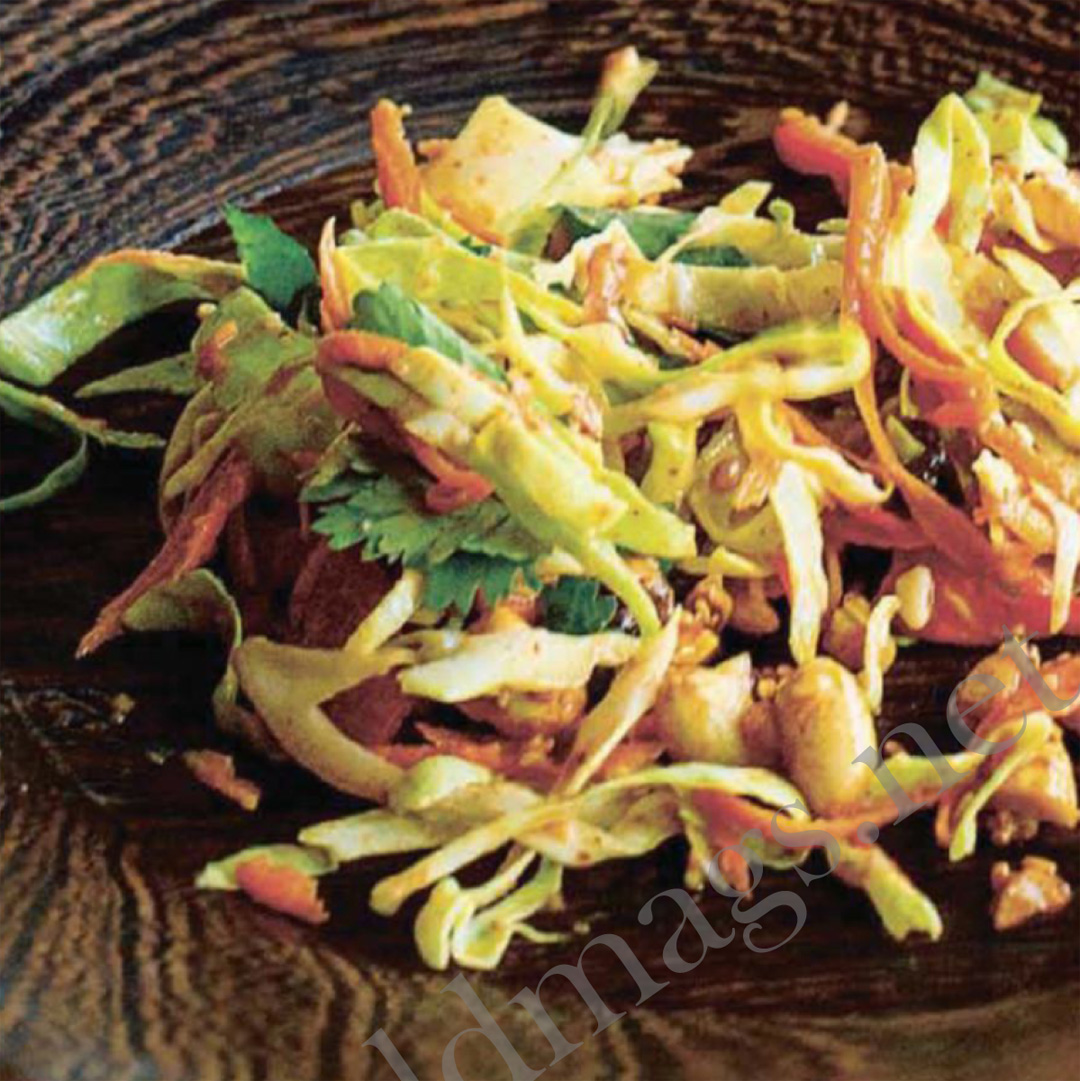 - Transfer the salad to a serving dish. Scatter with coriander, then the coated peanuts and seeds, and it’s ready to serve.