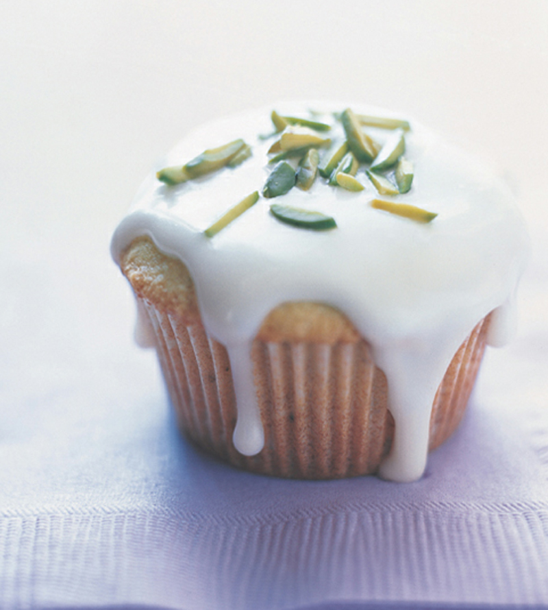 - To finish, place cupcakes on a wire rack set over a baking sheet; spoon icing onto each, and garnish with pistachio slivers. Cupcakes are best eaten the same day they are glazed; keep at room temperature until ready to serve. Drippy Icing