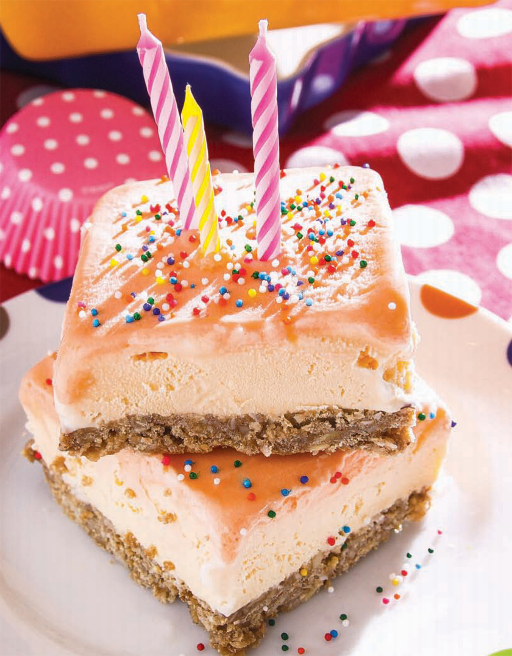 - Let stand at room temperature about 15 minutes before serving time. Cut into squares. Garnish with sprinkles, if desired.