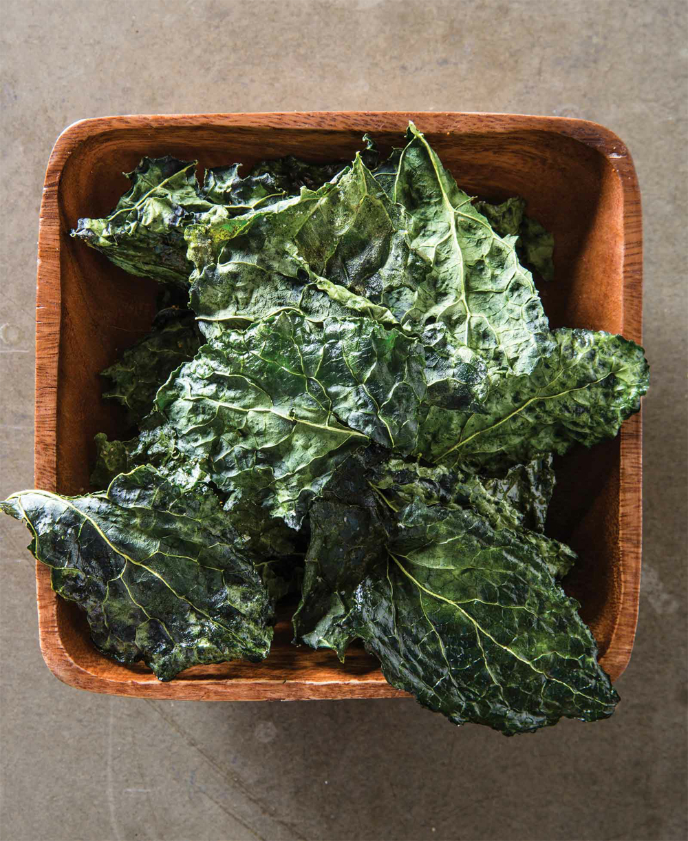 A nutritious alternative to potato chips, kale chips have recently become all the rage. But store-bought versions are often deep fried and loaded with salt, and homemade ones never turn out crispy enough. We wanted a light-as-air, earthy kale chip that remained crispy. We discovered three keys to getting kale chips to the perfect texture. First, we lengthened the cooking time and lowered the oven temperature to mimic the effects of a dehydrator. Next, we baked the kale on wire racks to allow the oven air to circulate above and beneath the leaves. Finally, we started with completely dry leaves we blotted them between two dish towels to make sure no water was left clinging. Tossed with olive oil and seasoned lightly with crunchy kosher salt, these ultracrisp kale chips were a supersatisfying snack. We prefer to use Lacinato (Tuscan) kale in this recipe, but curly-leaf kale can be substituted; chips made with curly-leaf kale will taste a bit chewy at the edges and won’t keep as well. We prefer the larger crystal size of kosher salt here; if using table salt, reduce the amount by half.