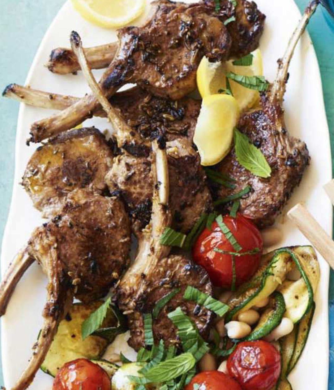 - Transfer zucchini and tomatoes to a large bowl. Add the beans, mint, remaining lemon juice and the olive oil; toss gently to combine. Season with cracked black pepper. Serve lamb cutlets with the warm salad and lemon wedges.