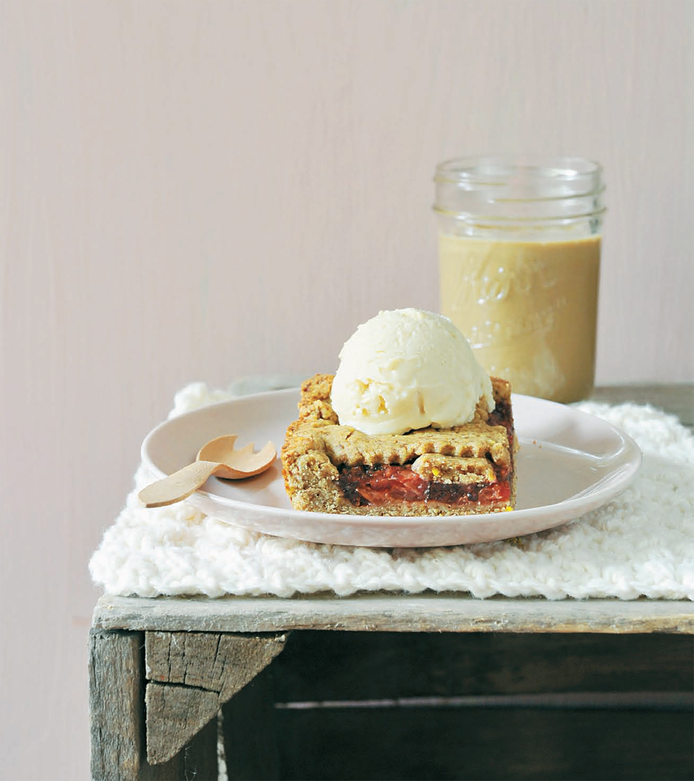 You know the saying “Baseball, not-dogs, apple pie, and lemonade”? Not in Tami’s family. Mouth- puckering sour cherry pie is the family favorite. Making pies is a labor of love, but sometimes cutting corners can be a good thing. This quick bar cookie version is lower in fat than a typical double crust pie, but still delivers on taste.