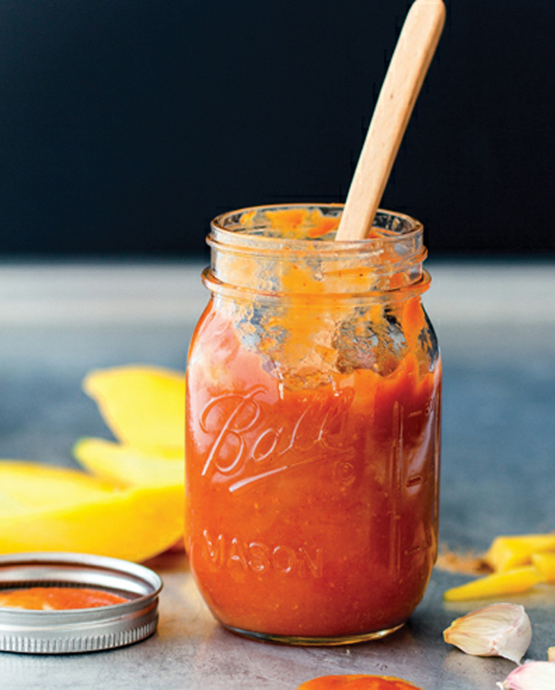 - Combine the chillies with the mango, vinegar and garlic in a blender and process until smooth.