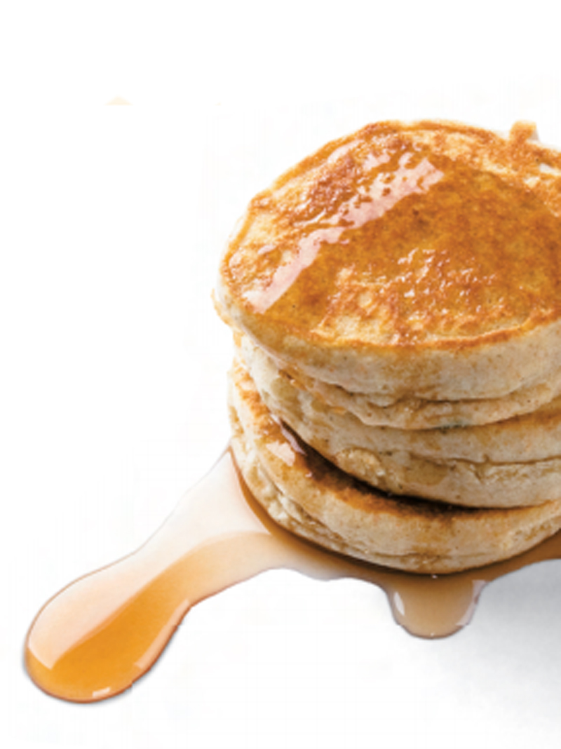 - Heat a greased skillet. Drop a pea-size amount of batter in skillet; skillet is at correct temperature when batter turns golden quickly. Remove batter piece with a spatula. Pour ¼ cup (60 ml) of batter into skillet. When air bubbles form on the top, flip over with a fl at spatula. Cook on the other side and remove to a plate. You may cook 3 to 4 cakes at a time depending on the size of the skillet.