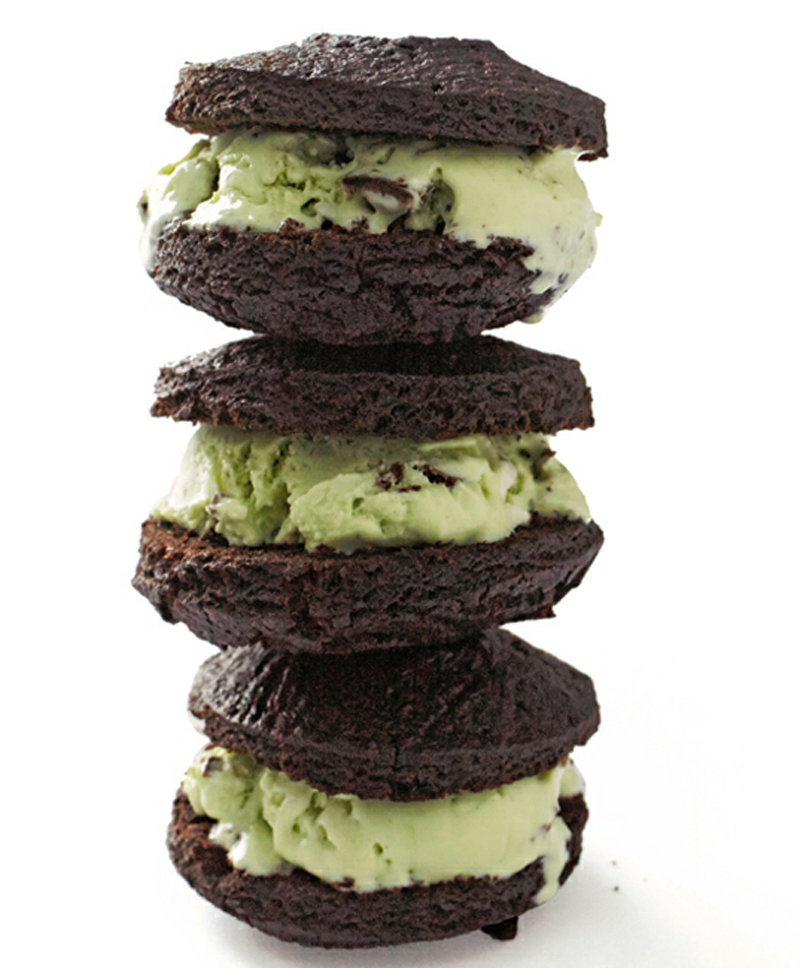 Nestling a big scoop of ice cream between two doughnuts dials the indulgence factor up a notch, making for a wonderfully over-the-top sweet. You can make all kinds of doughnut ice cream sandwiches. Aside from this mint chocolate version, a couple of my other favorite combinations are vanilla-chocolate, using the Vanilla Ice Cream, and chocolate-chocolate, using the Chocolate Ice Cream.