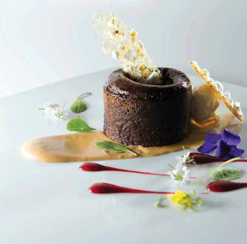 - If the cakes have cooled, you can reheat them for a couple of minutes in a low oven if you wish. Arrange 8 plates on a work surface. Spoon caramel across each plate. Place a cake to one side of the plate and top it with a tuile. Add a scoop of ice cream across from the cake and serve right away.