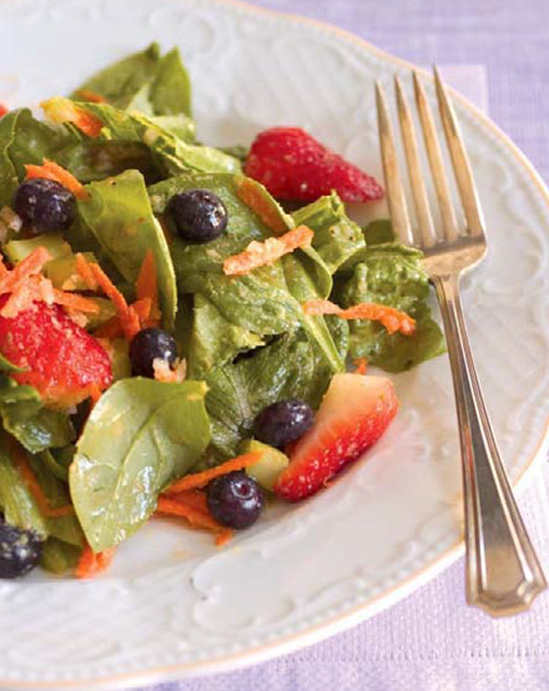 - To prepare the dressing, combine the ingredients in a small bowl and pour over the salad. Toss to coat.