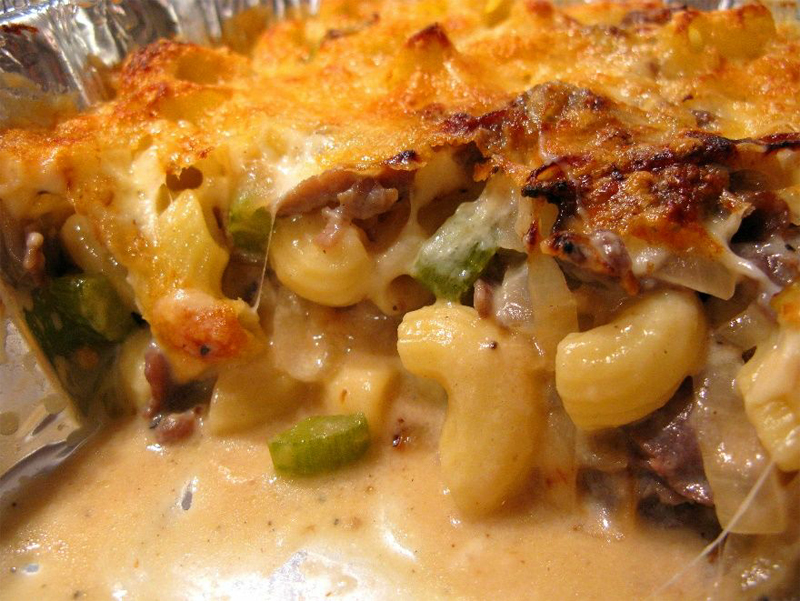 - Add in the sour cream, cream cheese, steak and half of the provolone cheese slices. Stir well to mix. Season with a dash of salt and black pepper.