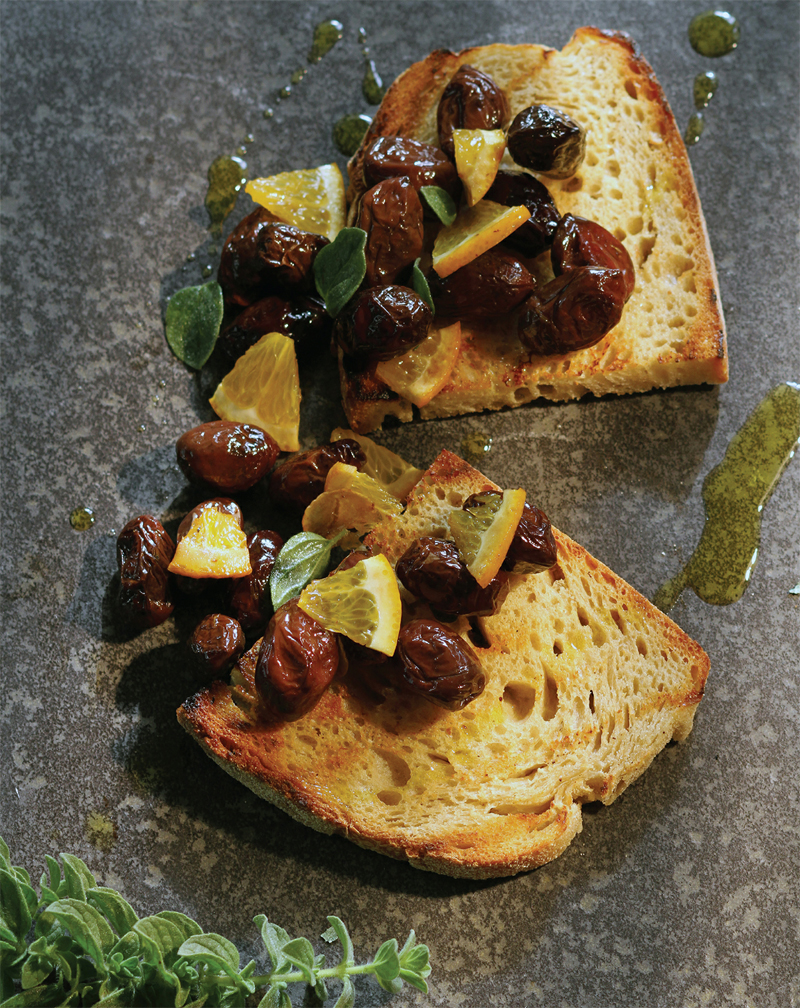 - Continue to shake the pan back and forth or gently stir for about 5 minutes, until the olives are warmed through, the garlic is soft and shiny, and the orange slices are slightly wilted. Stir in the oregano and transfer to a bowl. Serve.