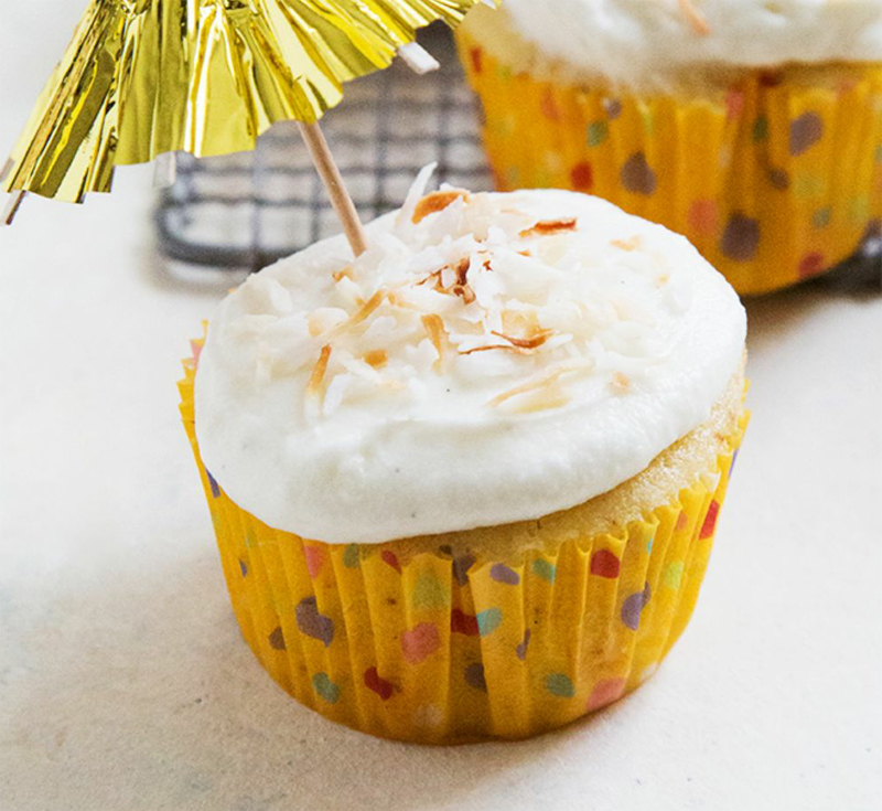 Moist cupcakes loaded with sweet crushed pineapples. Top with coconut or vanilla frosting and sprinkle some sweetened coconut flakes to make it even better.