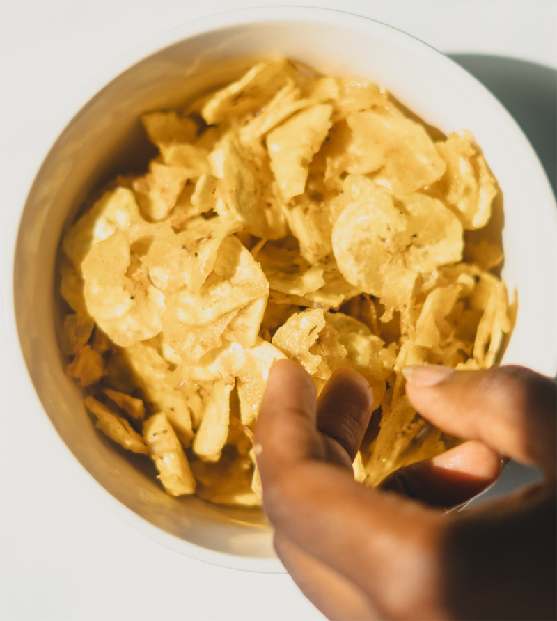 - Sprinkle salt on plantain slices and mix together in a bowl.