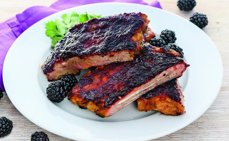 - For the marinade put the blackberries in a blender, add the peeled ginger and garlic and chop. Then add the brown sugar, honey, tomato sauce and spices and beat well. Pour the mixture into the pan and simmer, stirring occasionally, for 10-12 mins, until the marinade thickens.