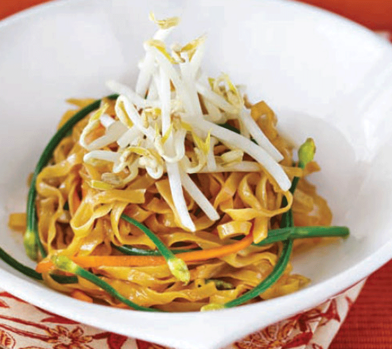 - In a wok or large sauté pan over high heat, add the cooking oil. When the oil is just starting to get hot, add the garlic and fry until fragrant, about 15 seconds. Add the chives and fry until just softened, about 1 minute. Toss in the carrots and fry 30 seconds. Pour in the oyster sauce, Maggi Sauce and wine and stir well. Add the noodles and toss! toss! toss! When the noodles are heated and cooked through, your dish is done! Taste and adjust with more Maggi Sauce if needed. Toss with the bean sprouts and serve.