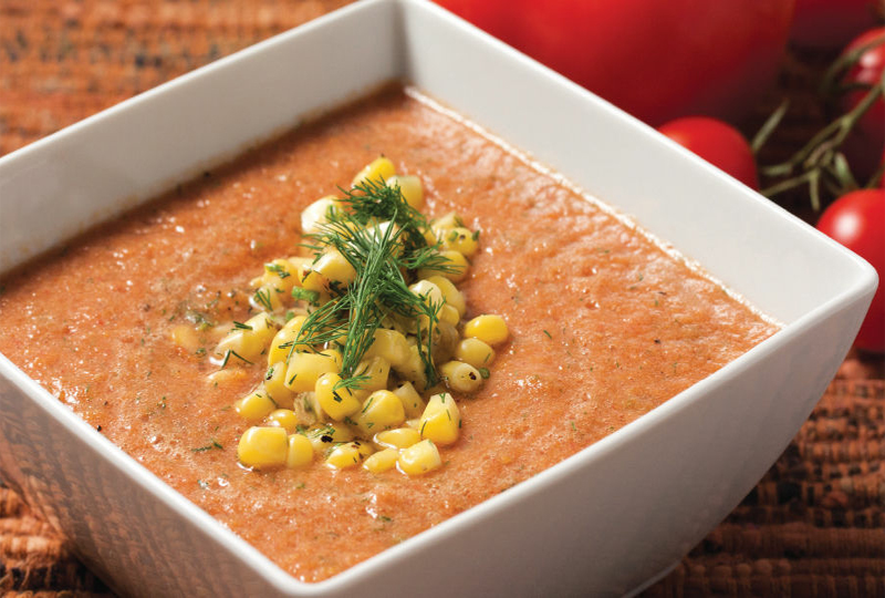 - Place tomatoes, squash, and garlic in a food processor and purée.