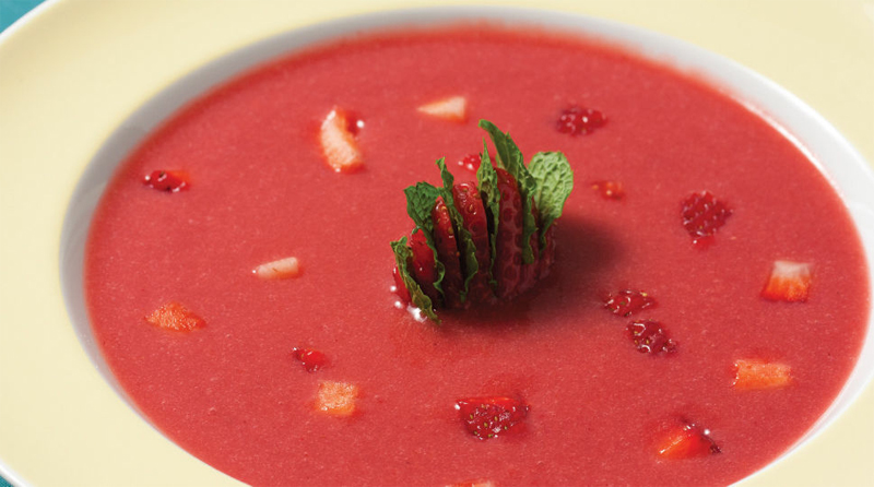 - Garnish with mint leaves and chopped strawberries. Serve chilled.