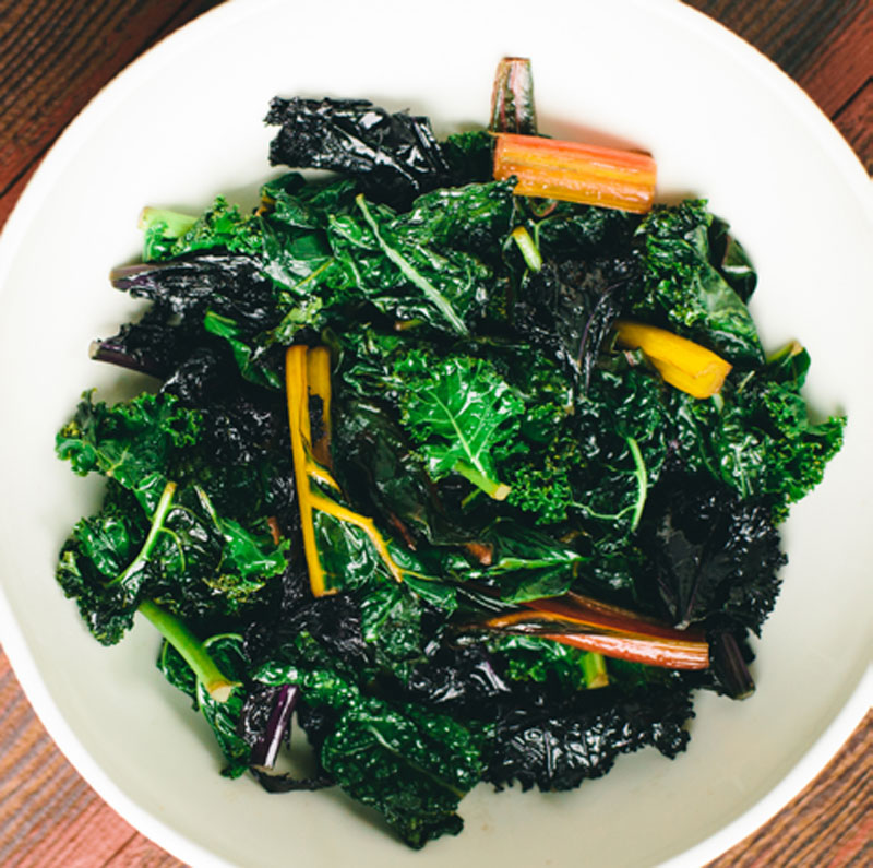 - 2 large bunches of kale, chard, or collard greens, stemmed and chopped roughly
