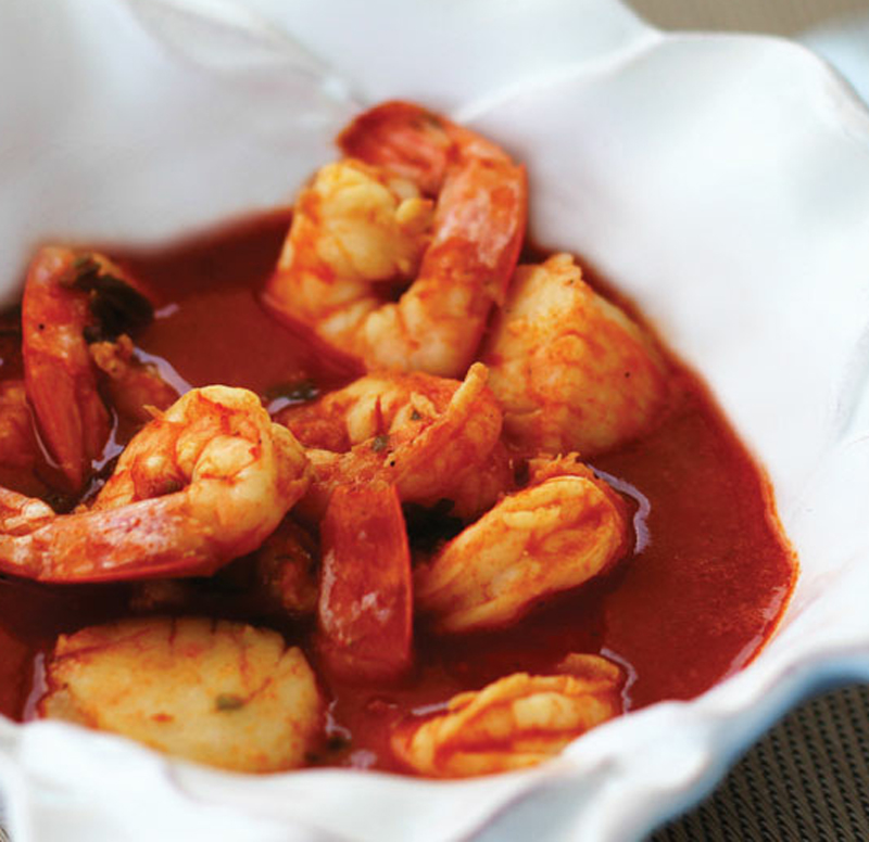 This soup is characterized by the flavorful juices released from the shrimp and scallops that mingle with the wine and tomatoes. The soup-like texture makes this dish ideal for dipping bread.