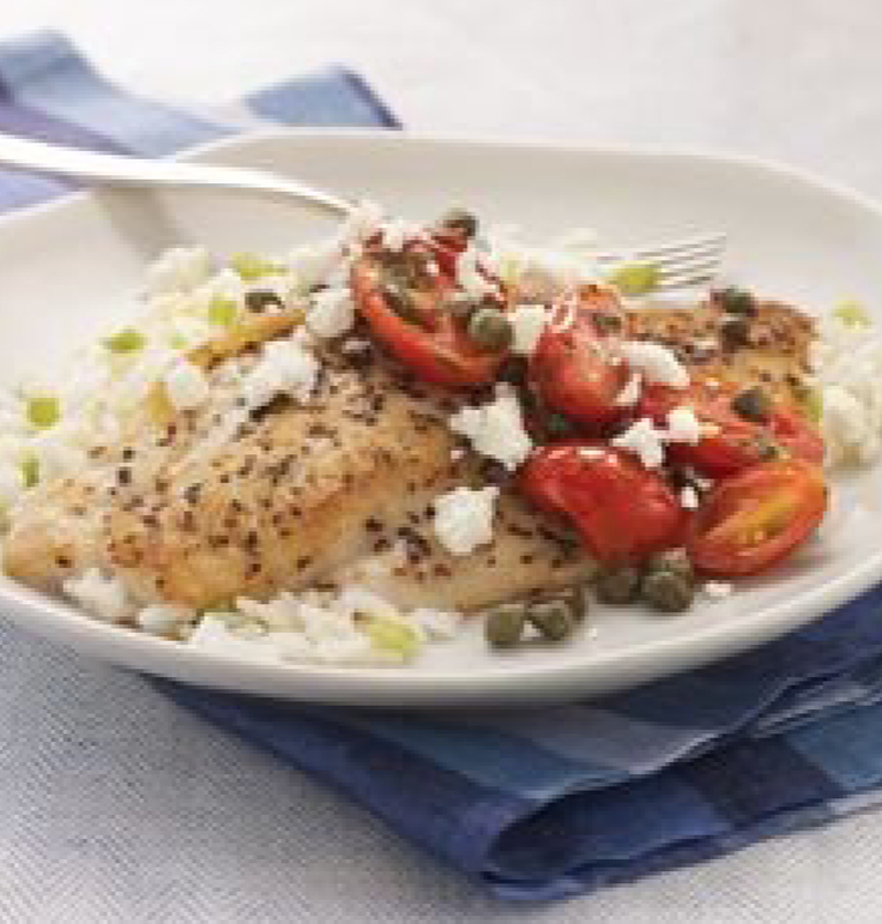 Three words describe this dependable weeknight dish: quick, easy, and delicious. This tangy salsa complements the sweet, mild flavor of the red snapper. If red snapper is unavailable, use halibut or sea bass. Serve the fish over a bed of rice tossed with garlic, green onions, and, if desired, fresh herbs.