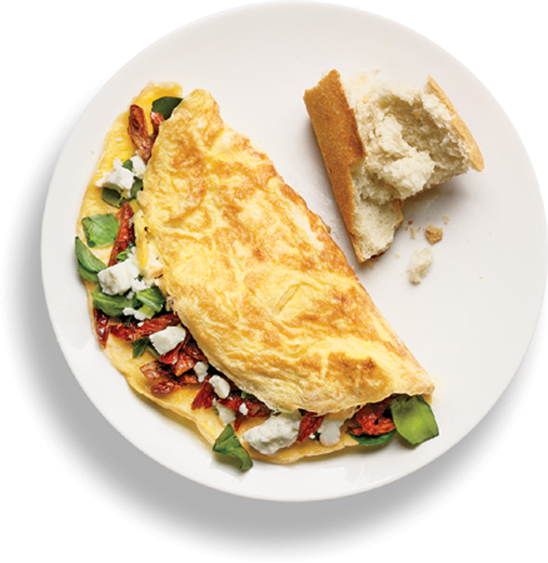 - Sprinkle with the spinach, sun-dried tomatoes, and Feta; fold over the filling. Serve with country bread.