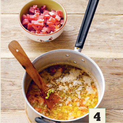 Heat the oil in a large saucepan over a medium heat. Add the onion and cook for 3–4 minutes, stirring occasionally, until just softened. Add the carrot and celery and continue cooking for 2 minutes.- Add the peas, pour over the stock and water and stir to combine.