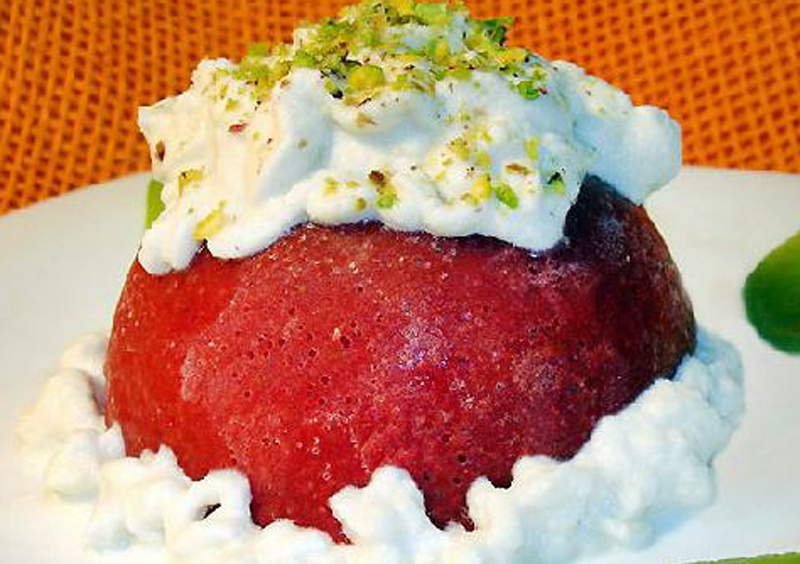 - Make ice cream scoops topped with almond white cream and pistachio nuts.