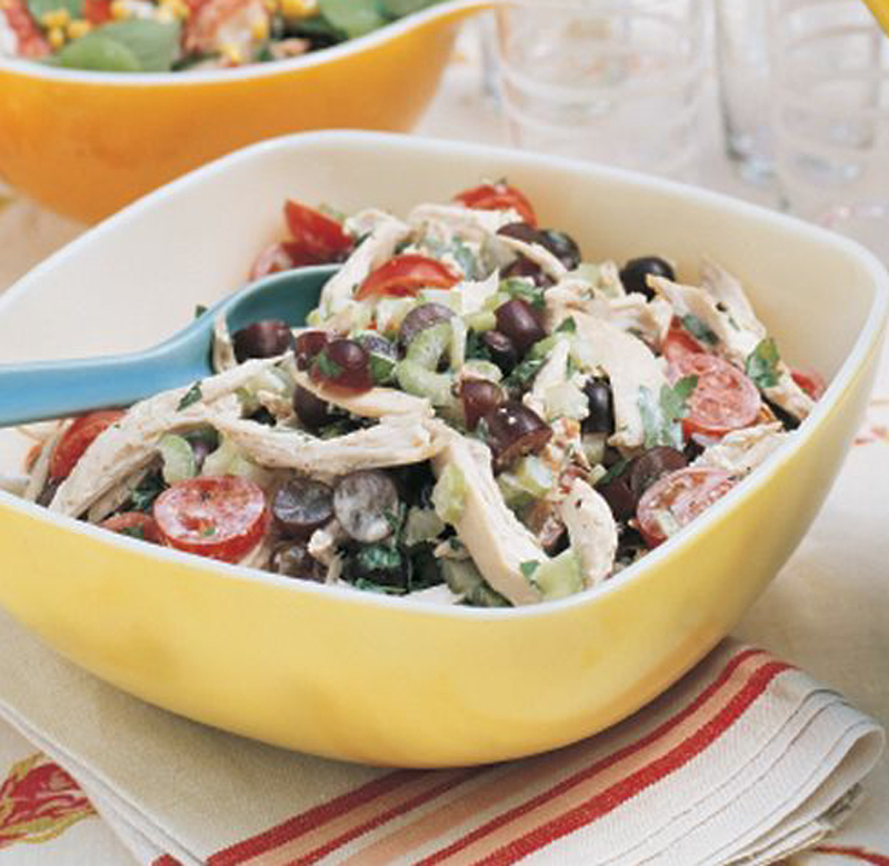 - Combine the chicken, celery, tomatoes, and grapes in a bowl. Season with salt and pepper. Toss in the parsley leaves.