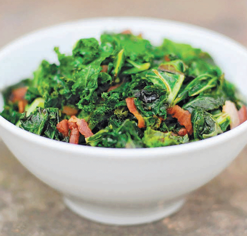 - Add the kale and cook for 5 minutes, or until the leaves soften. Mix in the vinegar, salt, and stevia. Serve immediately or save in the fridge for a snack later on.