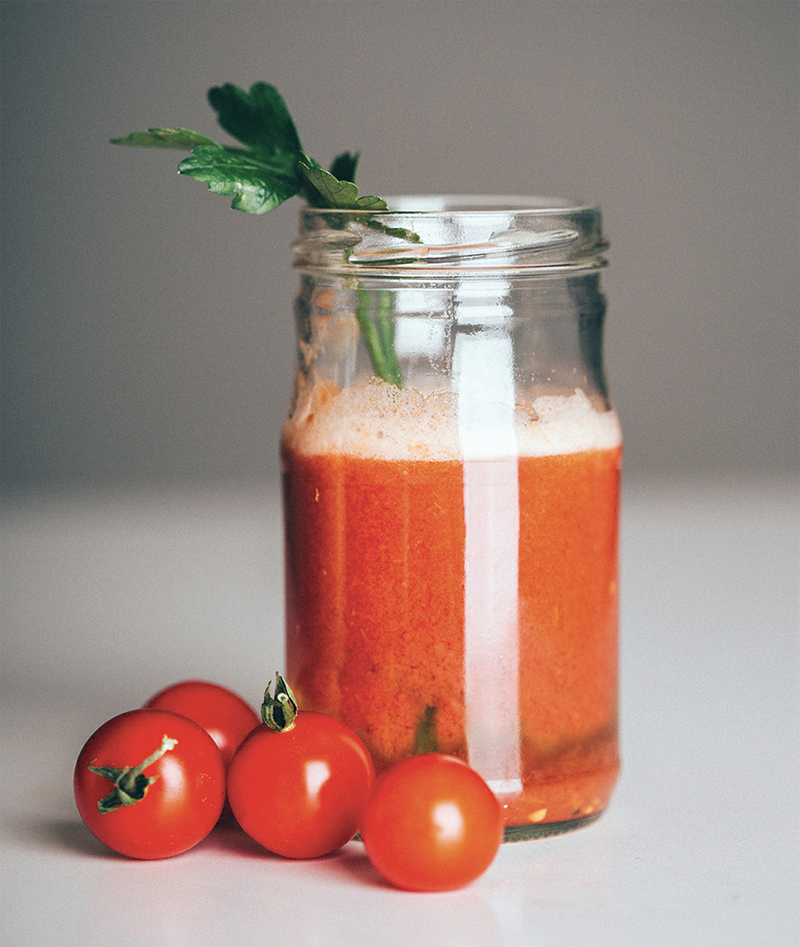Tomato is often neglected when you think of making vegetable juices, but it is a great option for a low-Fodmap juice base. This is my take on a Virgin Mary.